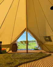 A 5 metre bell tent pitched for you in our beautiful meadow, with just matting inside. You'll need to bring all your camping gear, camp beds and bedding.